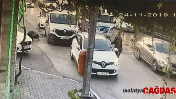 Aracın durdurularak, yaşlı adamın sıkıştığı yerden çıkartılma anı güvenlik kamerasında