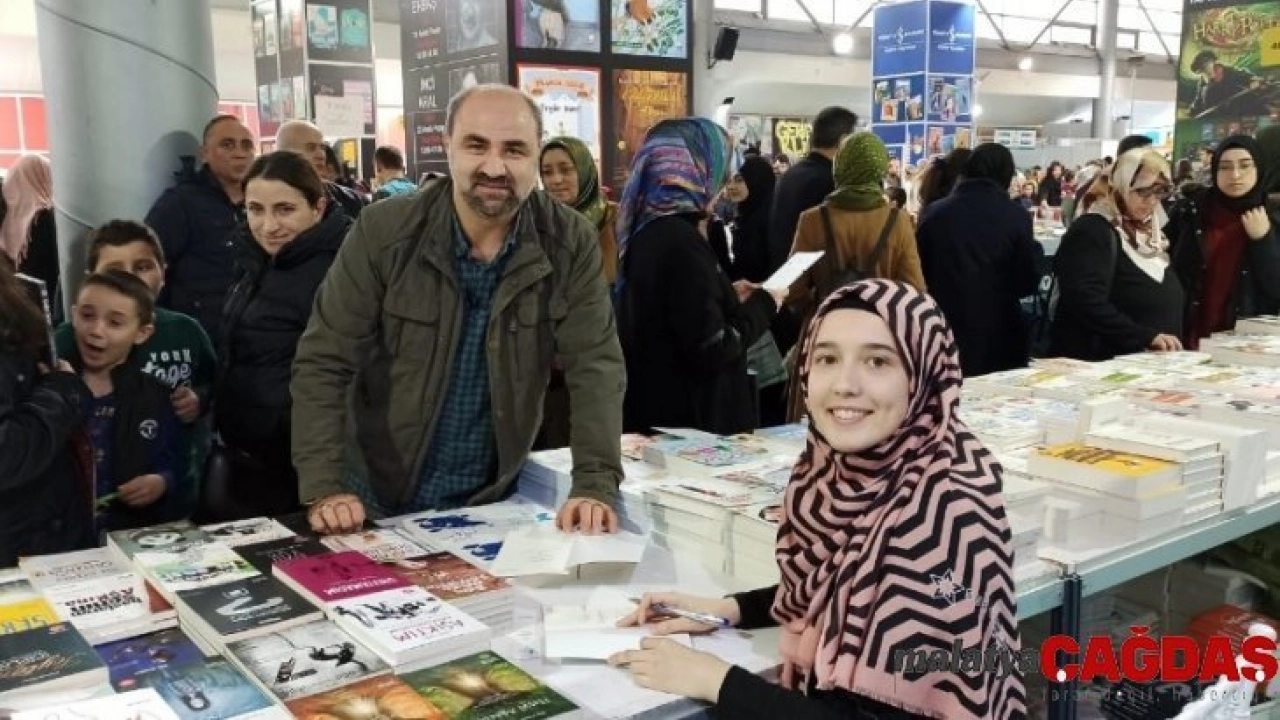 “Küçük Anne” lakaplı Bursalı yazar Tuğçe Çakır, kitap fuarında takipçileriyle buluşurken, kitaplarını da imzaladı.