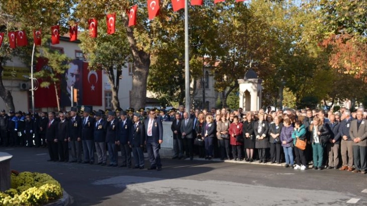 Törende, kaymakamlık, garnizon komutanlığı ve belediyenin çelenklerinin Atatürk Anıtı'na bırakılmasının ardından saatler 09.05’i gösterdiğinde 2 dakikalık saygı duruşunda bulunuldu ve sirenler çaldı.