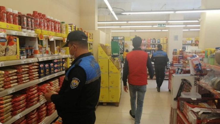 Gıda denetimleri sırasında maske ve mesafe kuralları konusunda vatandaşı ve esnafı uyaran Zabıta ekipleri, gıda ürünlerinin üretim yeri, vergiler dahil satış fiyatı, birim fiyatı ile bu fiyatların uygulanmaya başladığı tarihin etiketlerde yer alıp almadığına dair kontrollerini de sıklaştırdı.