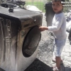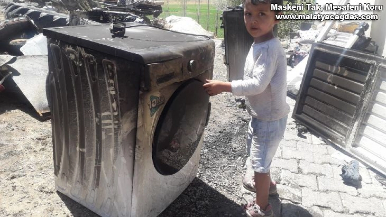 Komşular ve aile fertleri bir taraftan eşyalarını kurtarmaya çalışırken, hiçbir şeyden haberi olmayan 8 yaşındaki Berkan yanan çamaşır makinesinde oyuncakları ile oynamaya devam etti.