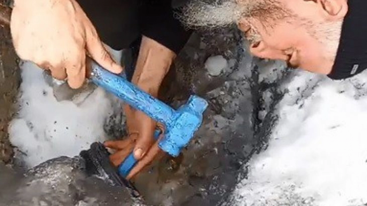 Buzlanan boruda mahsur kalan kediyi böyle kurtardı