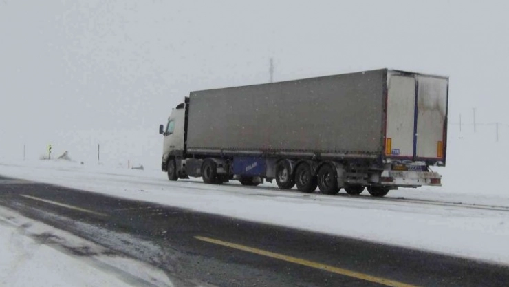Kars'ta buzlanan yolda kalan iki tır, sürücülerin yaklaşık 45 dakikalık uğraşları sonucu kurtarılarak yollarına devam etti.