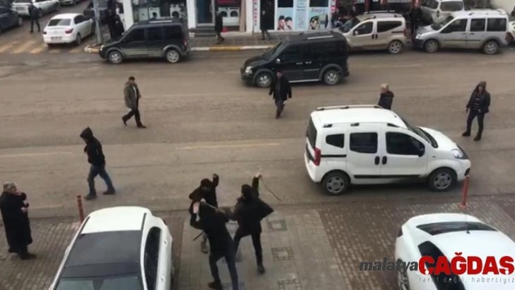 Cadde ortasında sopalarla birbirlerine saldırdılar