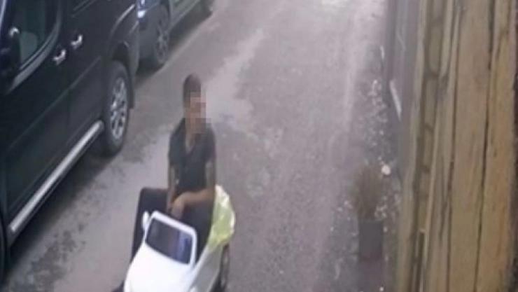 Sivas'ta yetişkin bir hırsız çalmak istediği akülü çocuk aracını taşıyamayınca içerisine binip sürerek uzaklaştı.