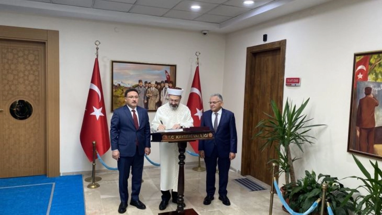 Bir dizi ziyaretlerde bulunmak üzere Kayseri’ye gelen Diyanet İşleri Başkanı Ali Erbaş, Kayseri Valisi Gökmen Çiçek’i makamında ziyaret etti. Burada şeref defterini imzalayan Erbaş, Kayseri’deki camilere yapılacak olan güneş enerjisi panelleri ile camilerin ısınma ve aydınlanma ihtiyaçlarının karşılanacağını söyleyerek, "Kayseri’ye çok defa geldim. Ancak bugün ki gelişimiz hakikaten hayırlara vesile olacak bir ziyaret. Öncelikle şimdiye kadar hiçbir ile nasip olmayacak yoğunlukta bir program gerçekleştireceğiz. Hiçbir ilde 800 kadar hafız kardeşimizin merasimini yapmadık. Hakikaten bu Kayserimiz için ve ülkemiz için çok büyük bir zenginlik. İnşallah hafızlık merasiminde kendileri ile beraber olacağımız gençlerimiz, gelecekte ülkemiz için çok faydalı hizmetler yapacaklardır. Yine çeşitli açılışlarımız olacak. Özellikle camilerimizin aydınlanma, ısınma ihtiyaçlarını gidermek için bir hayır sahibimizin, güneş paneli isimli bu projeyi üstlenmiş olması ve Kayseri’de bütün camilerimizin hem ısınma hem de aydınlanma ihtiyacını bu şekilde giderilmiş olması hem devlet bütçesine bir katkı olacak hem de Cenab-ı Hakkın bütün kainata nasip etmiş olduğu güneş enerjisini faydaya dönüştürmüş olacağız. Kayseri’de ki bu proje diğer illerde örnek olacak. Bunu çok önemsiyoruz. İnşallah o projenin temelini de atacağız” ifadelerini kullandı.