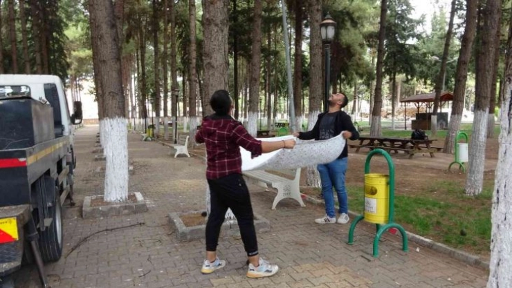 Adıyaman merkez Yeni Sanayi Mahallesi Sümer Park içerisinde yaklaşık 17-18 metre uzunluğundaki çam ağacının tepesine çıkan iki yavru kediyi fark eden vatandaşlar durumu itfaiye ekiplerine bildirdi. Kısa sürede belirtilen yere gelen itfaiye ekipleri, park içerisindeki ağaç sıklığından dolayı araç ile yaklaşamadı. Durum üzerine, bölgede budama faaliyetleri yürüten Adıyaman Belediyesi Park ve Bahçeler Müdürlüğü ekipleri, araç ile kedinin bulunduğu ağaca yanaştı. 14 metreye kadar uzaya bilen aracın merdiven kabini kedilere yetişemedi. Durum üzerine belediye çalışanı 14 metre yükseklikten sonra kediyi yakalama aparatı uzattı. Bir türlü yakalanamayan yaramaz kedilerin düşme durumuna karşı belediye çalışanları ile vatandaşlar, ağacın altında branda niyetine yatak çarşafı açtı. Kurtarma operasyonu esnasında yavru kediler, bulundukları ağaçtan bir başka ağaca geçmek istediği esnada dengesini kaybederek 17-18 metre yükseklikten açılan çarşaf içerisine düştü. Sağlık durumları iyi olan her iki yavru kedi, belediye çalışanları tarafından sütle beslendi. Karınları doyurulan kediler, çağrılan Adıyaman Belediyesi Veteriner Müdürlüğü ekiplerince alınarak veteriner müdürlüğüne götürüldü.
