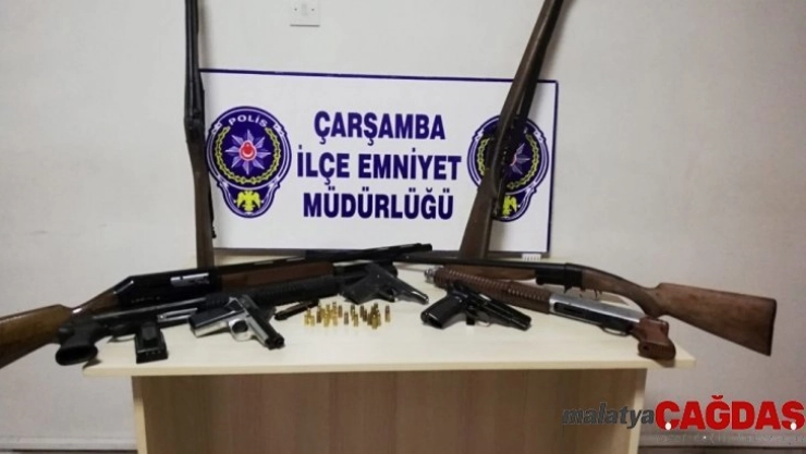 Edinilen bilgilere göre; Çarşamba İlçe Emniyet Müdürlüğü Asayiş Büro Amirliği ekiplerinin gerçekleştirdikleri istihbari çalışmalar neticesinde Kirazlıkçay Mahallesi’nde Ç.G. (26) isimli şahsa ait ikamette ve iş yerinde yapılan aramada; 2 adet ruhsatsız tabanca, 1 adet kurusıkı tabanca, 6 adet ruhsatsız tüfek, 1 adet bıçak ve silahlara ait 27 adet mermi ele geçirildi.