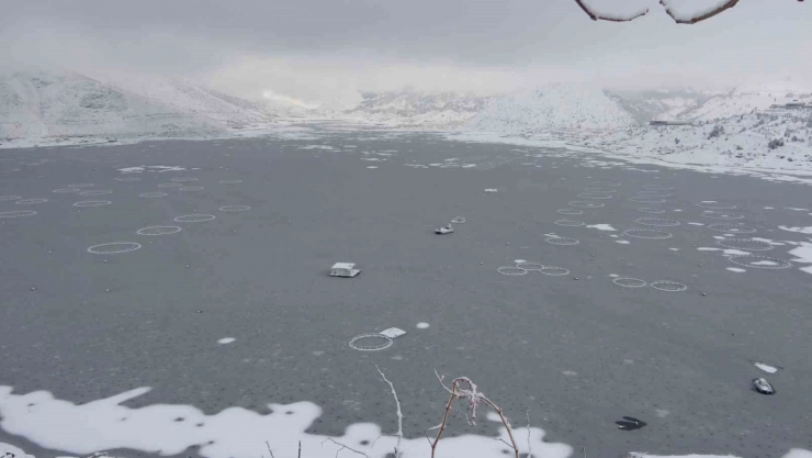 Adıyaman'da Çat Barajı'nın yüzeyi buz tuttu