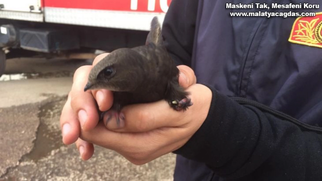 Çatıda mahsur kalan kuşları itfaiye kurtardı