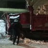 Bingöl'ün Karlıova ilçesinde çatıdan düşen kar kütlesi park halindeki saman yüklü kamyona hasar verdi, o anlar güvenlik kamerasına yansıdı.