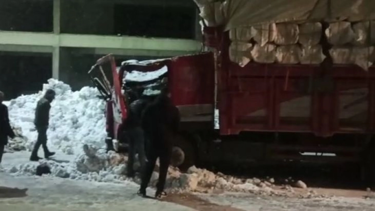 Çatıdan düşen kar kütlesi kamyona hasar verdi