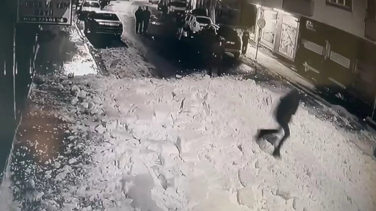 Çatıdan kar kütleleri düştü: Bir şahıs koşarak saniyeler içerisinde kurtuldu