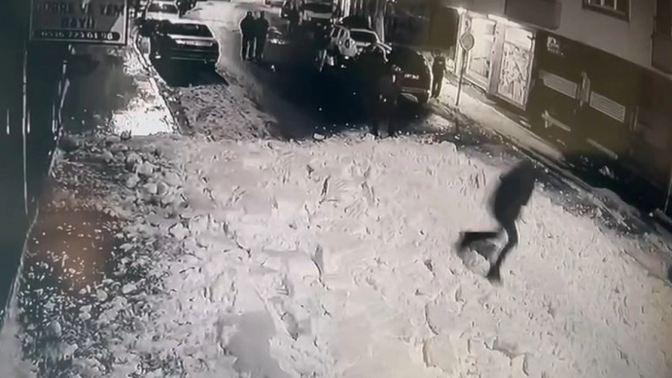 Olayı anlatan bölge esnafı Abdullah Baykara, "Akşam saat 22.00 sıralarında çatıdan ciddi anlamda kar düştü. Bir aracın ön tamponuna düştü. İkinci bir kar düşüşü de oldu. Bir vatandaş saniyeler içerisinde kurtuldu" dedi.