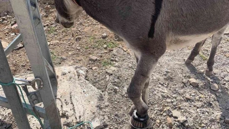 Solhan ilçesine bağlı Arakonak beldesinde bir eşek otlandığı sırada ayağı çaydanlığa sıkıştı. Durumu gören çevredeki vatandaşlar belediye itfaiye ve veteriner hekime ulaştı. Bölgeye giden ekipler, uzun uğraşların ardından eşeğin ayağını çaydanlıktan çıkardı. Tedavisi yapılan eşek yeniden doğaya salındı.