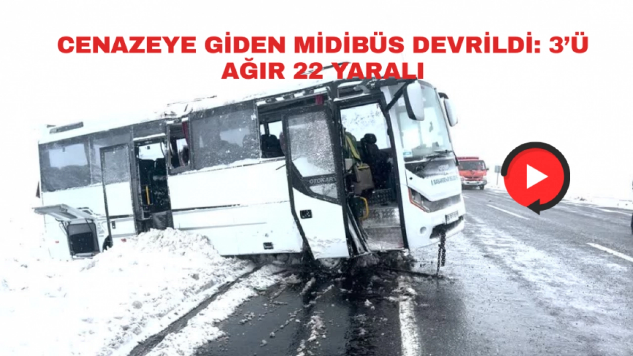 Kayseri'nin Pınarbaşı ilçesinde, cenazeye gidenleri taşıyan midibüsün devrilmesi sonucu 3'ü ağır 22 kişi yaralandı.
