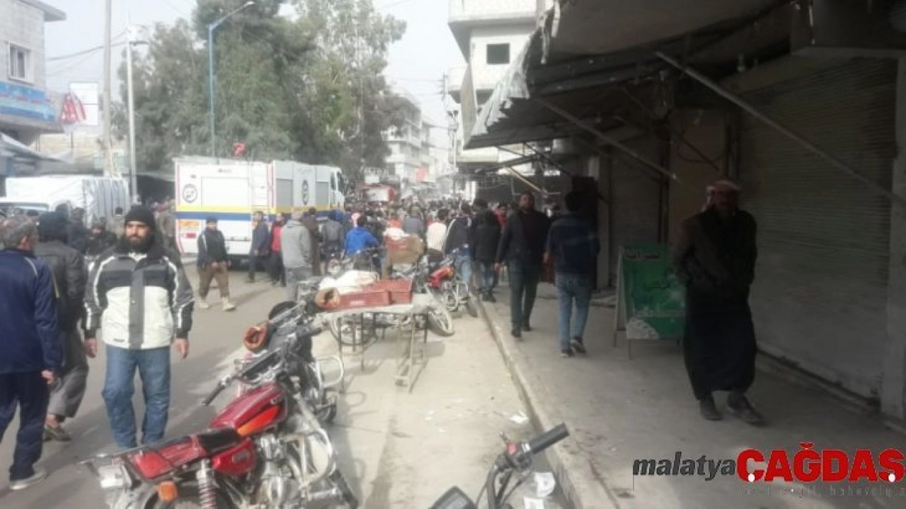 Suriye'nin Halep iline bağlı Cerablus ilçesinde pazar yerinde düzenlenen bombalı saldırı sonucu en az 5 sivil yaralandı.