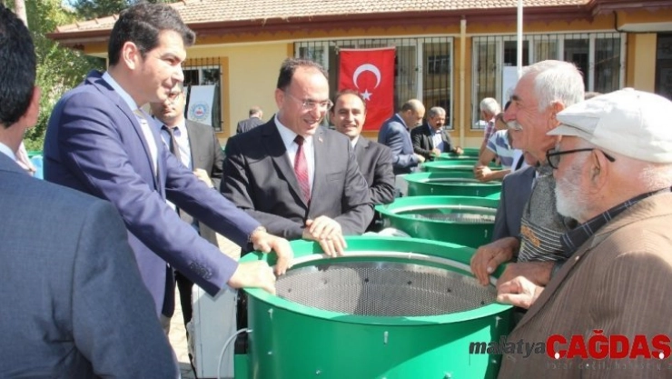 Adıyaman'ın Gölbaşı Kaymakamlığı tarafından yürütülen Kabuksuz Bademim Kabuksuz Cevizim Projesi kapsamında, 26 çiftçiye ceviz kabuğu soyma makinesi yapılan törenle dağıtıldı.