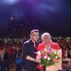 Başkan Erdem, Bbazı oda, siyasi parti, sivil toplum kuruluşları başkan ve temsilcilerinin de katıldığı konser sonunda Bilal Sonses’e teşekkür edip çiçek sundu.