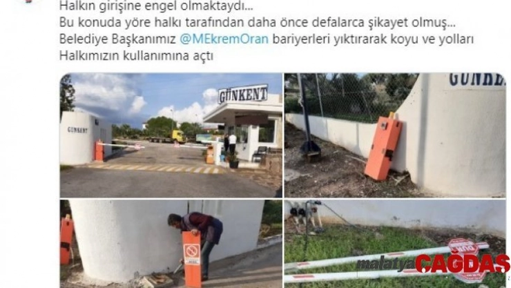 Öte yandan Erdoğdu’nun siteye girmeden önce yaptığı, "Site girişindeki nizamiye, halkın buraya girişine engel oluyor" açıklamasının ardından girişteki bariyerler de ekiplerce yıkıldı.