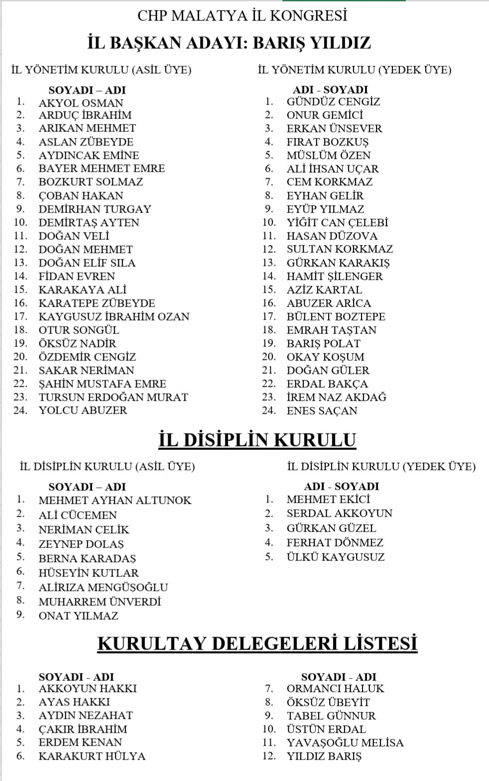 228 oy alan Barış Yıldız, CHP Malatya İl Başkanlığı'na yeniden seçildi.