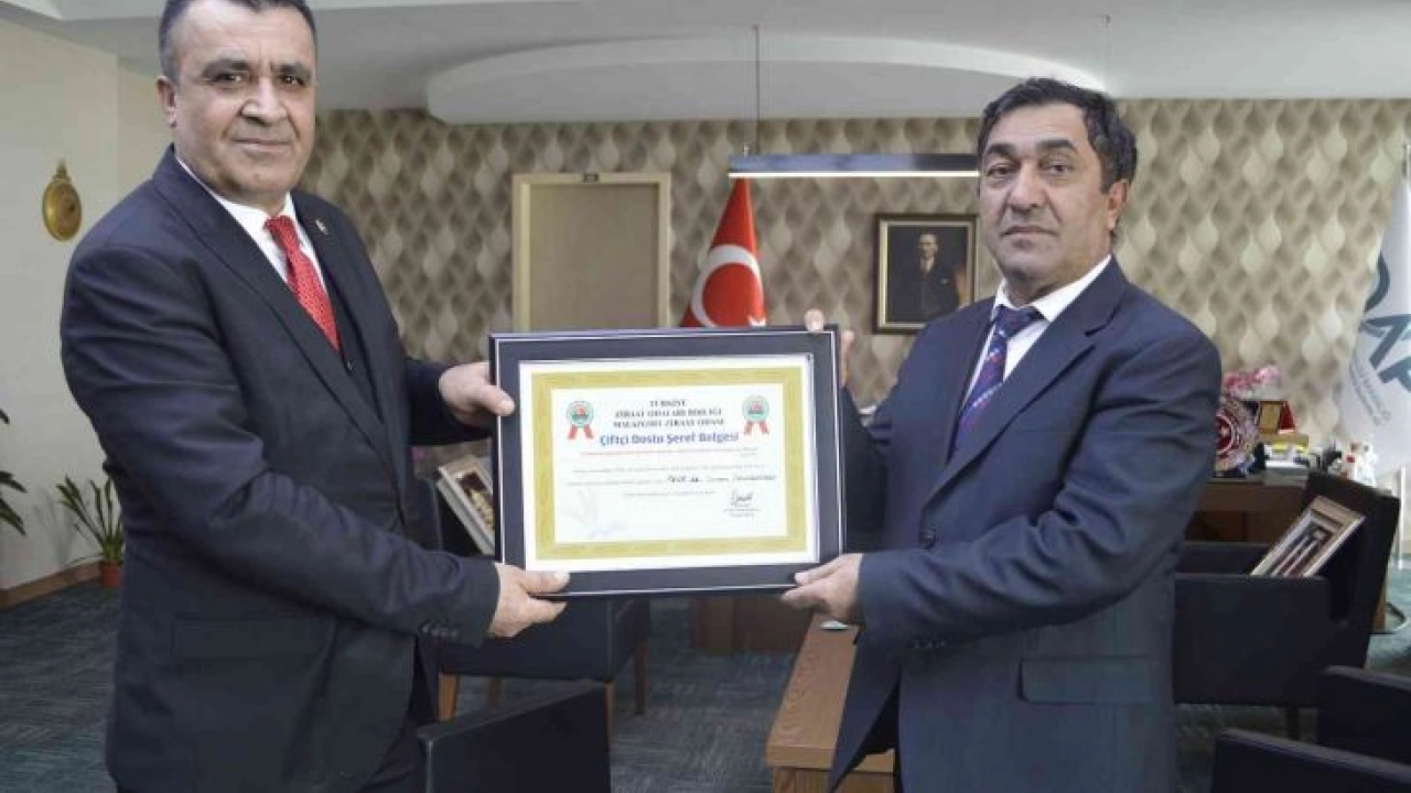 DAP Bölge Kalkınma İdaresi, tarım sektörüne yaptığı desteklerden dolayı Malazgirt Ziraat Odası tarafından ödüllendirildi. Malazgirt Ziraat Odası Başkanı Tahsin Kılıç, 'Çiftçi Dostu Şeref Belgesi'ni DAP BKİ Başkanı Prof. Dr. Osman Demirdöğen'e takdim etti.