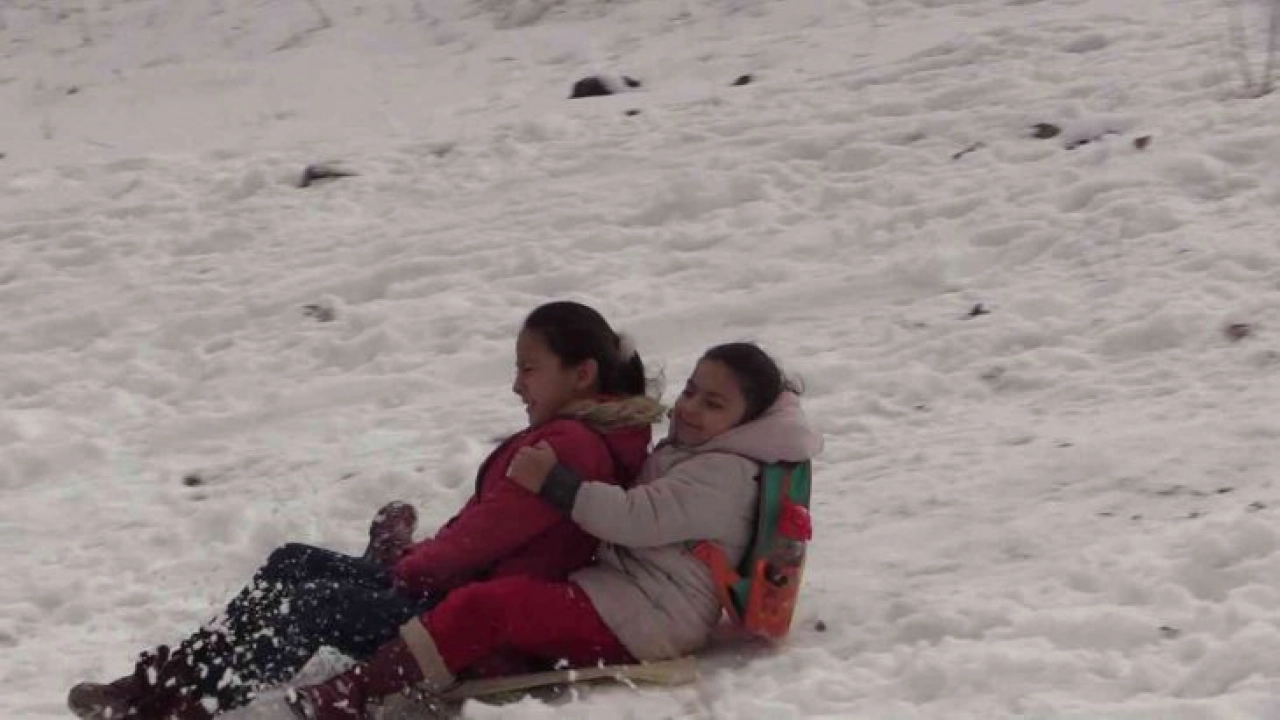 Erzurum’da aralıklı olarak etkisini sürdüren kar yağışının keyfini çocuklar çıkarttı. Palandöken ilçesine bağlı Adnan Menderes Mahallesinde yaşayan çocuklar, poşetlerini alarak mahallenin en dik alanına koştu. Onlarca çocuk sırtlarında okul çantalarıyla poşetlerle kayarak doyasıya eğlendi.