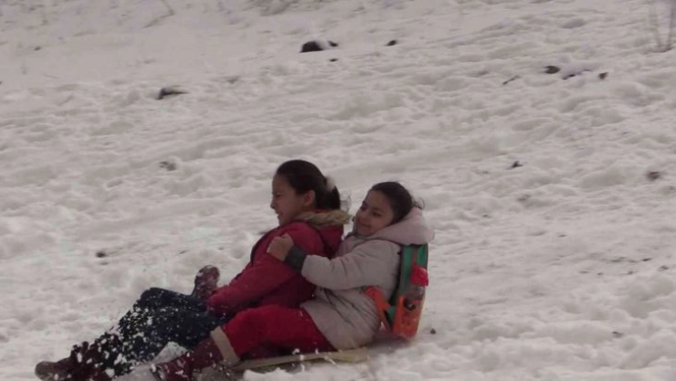 Çocuklar karın keyfini poşetle kayarak çıkarttı