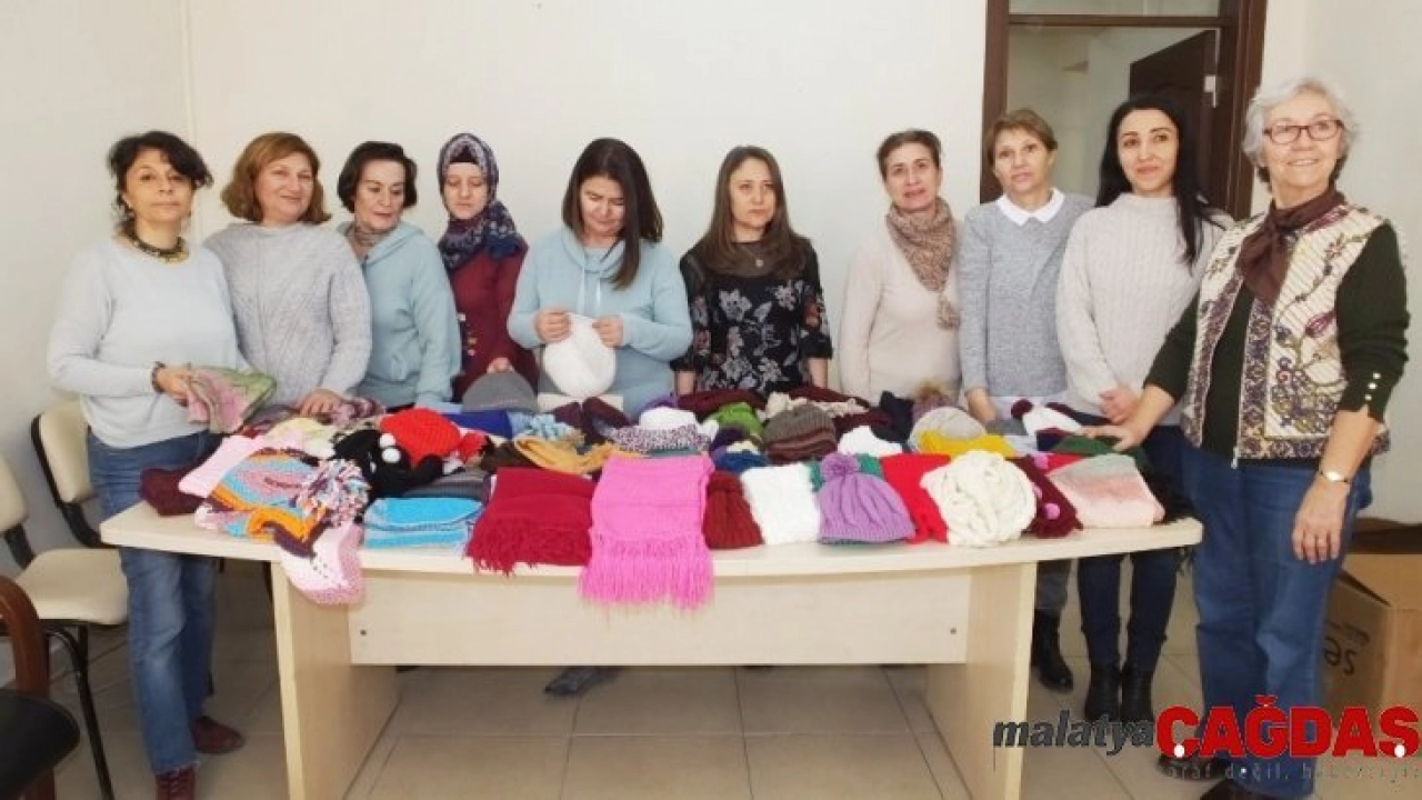 Çocuklar üşümesin diye bere ve atkı ördüler