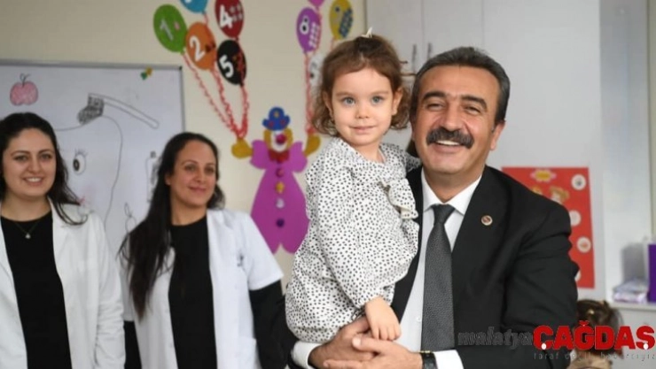 Başkan Çetin, çocuklara diş macunu ve diş fırçası hediye ederek onlardan günde en az iki kez dişlerini fırçalama sözü aldı. Diş macunu ve diş fırçalarını alan çocuklar Başkan Soner Çetin’e hep bir ağızdan teşekkür etti.
