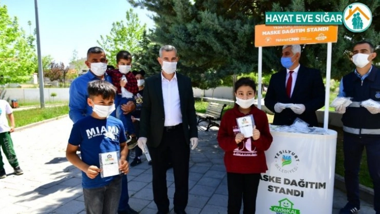 Yeşilyurt Belediyesi Şehit Ömer Halisdemir Kültür ve Sanat Merkezinin önünde sosyal mesafe kurallarına uygun olarak ayarlanan alanda kurulan maske dağıtım standını ziyaret eden Yeşilyurt Belediye Başkanı Mehmet Çınar, çocuklardan maskelerini takmalarını ve sosyal mesafe kurallarına uygun olarak verilen izni en iyi şekilde değerlendirmelerini istedi.
