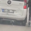 Canlarını hiçe sayan iki çocuk, paten üstünde hareket halindeki araca tutunarak dakikalarca seyahat etti.