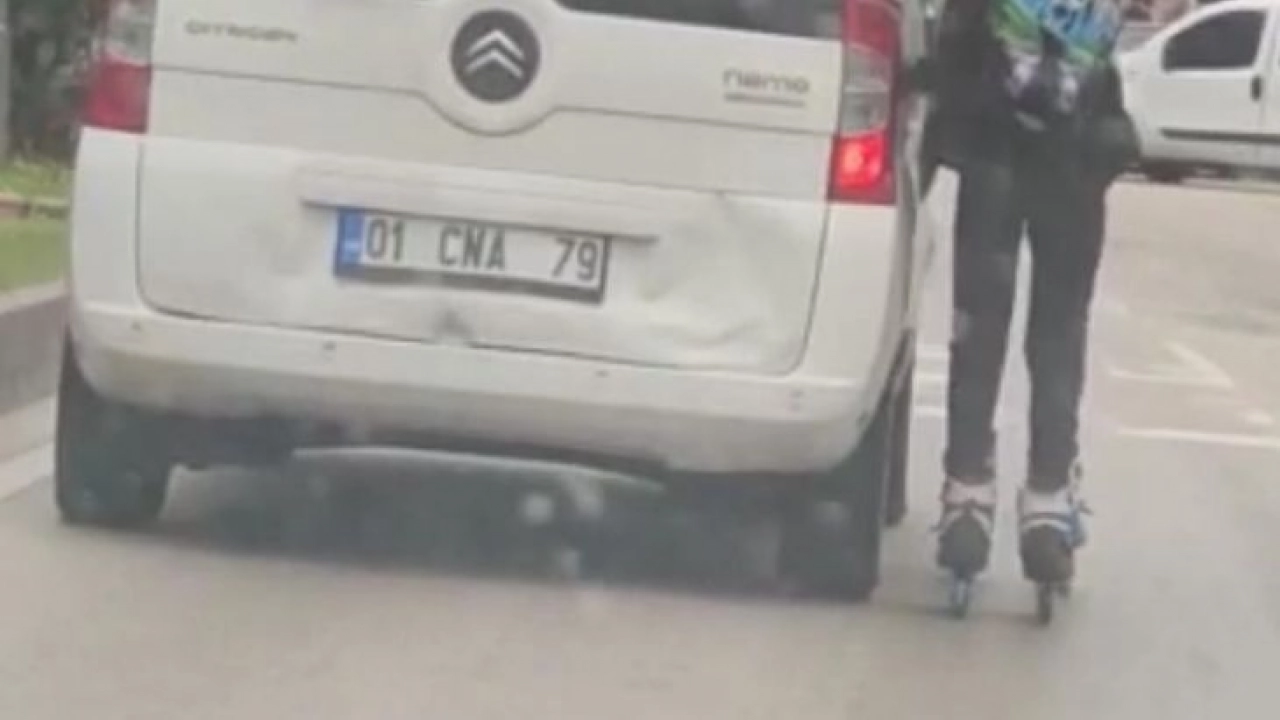 Adana’nın merkez Seyhan ilçesinde bulunan Bülent Angın Bulvarında patenli iki çocuğun hafif ticari araca tutunarak yolculuk yapması arkadan gelen başka bir araç yolcuları tarafından saniye saniye görüntülendi.