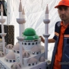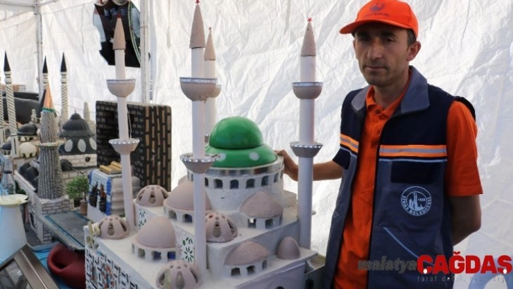 Temizlik işçisi Murat Uçar, çöpten topladığı atık malzemeleri sanat eserine dönüştürmesinin 3 yıl sürdüğünü belirterek, Temizlikte çalıştığım esnada çöplerin yanına atılan atık malzemelerden böyle eserler yaptım. Atılan malzemeleri topladım bir araya getirdim ve değerlendirdim. Camiler yaptım. Çifte Minareli Medrese, Kale Cami, şelale bir de çeşme yaptım. Bunları yapmam 3 yıl sürdü. Malzemeleri çöpten topluyorum. Topladığım malzemeler; şeker tabakları, köylerde kullanılan ağaç tas, apartman içerisindeki sensörlü lamba, çocuk arabası tekerleri ve mutfak tezgahı taşları gibi malzemeleri toplayarak yaptım” dedi.