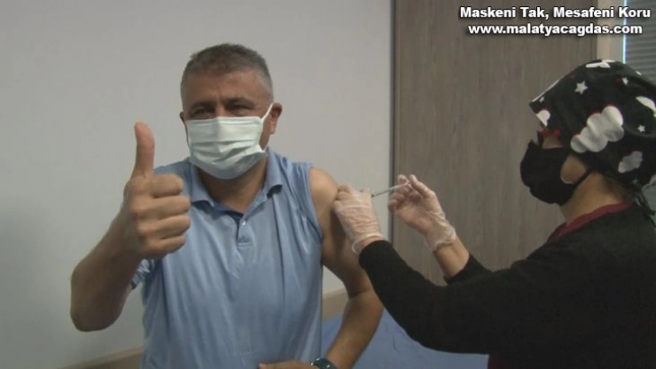 Malatya Eğitim ve Araştırma Hastanesi'nde 100 bininci Covid-19 aşısı, Başhekim Prof. Dr. Erdal Aktürk'e yapıldı.