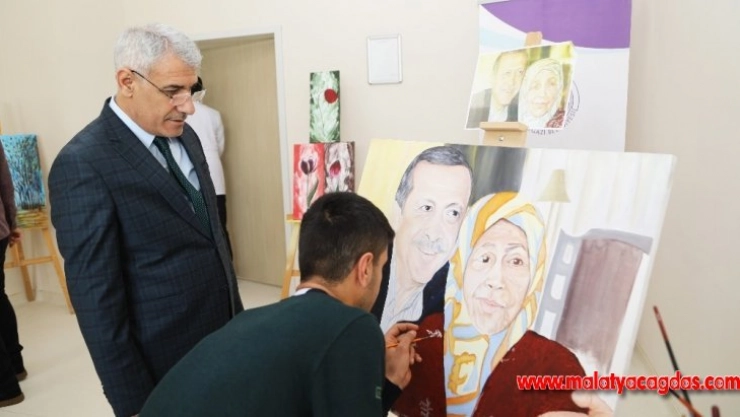 Battalgazi Belediyesi Engelsiz Yaşam ve Rehabilitasyon Merkezi’nde tedavi gören Serebral palsi hastası Muhammed Gün, Cumhurbaşkanı Recep Tayyip Erdoğan’a olan sevgisini farklı bir yolla dile getirdi. Cumhurbaşkanı Erdoğan’ı çok seven ve en büyük hayali kendisiyle tanışmak olan Gün, Cumhurbaşkanı’nın doğum gününe özel olarak bir resmi tabloya döktü. Doğum günü 26 Şubat olan Cumhurbaşkanı Erdoğan için rahmetli annesi Tenzile Erdoğan ile yan yana oldukları fotoğrafı tabloya döken Gün, bu resmi Cumhurbaşkanı’na ulaştırmak istiyor. Çizdiği resmi, Cumhurbaşkanı Erdoğan’a hediye etmek isteyen engelli genci ziyaret eden Battalgazi Belediye Başkanı Osman Güder, “Muhammed Gün kardeşimiz, Cumhurbaşkanımıza olan muhabbetlerini gösterme adına doğum gününe ait resmi, sizlere hediye etmek istiyor” dedi.