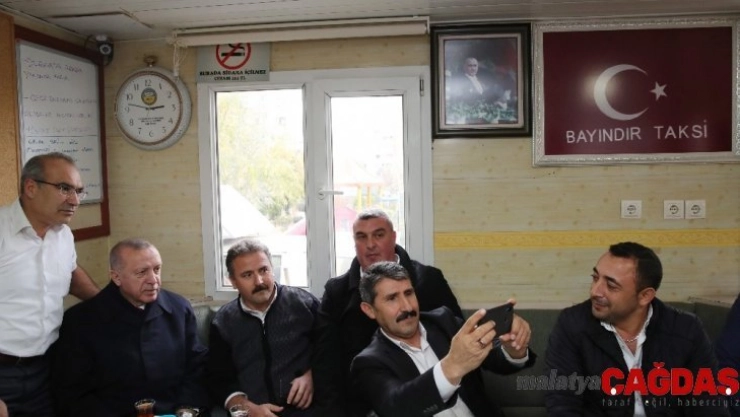 Cumhurbaşkanı Erdoğan, taksi durağında çay içti