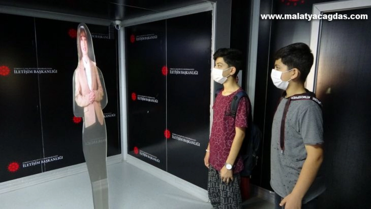 Merkez Atatürk Bulvarı Orman İşletme Müdürlüğü karşısında konuşlanan dijital tırda gazetecilere açıklamalarda bulunan Cumhurbaşkanlığı İletişim Başkanlığı Erzurum Bölge Müdürü Recep Küçükece, Cumhurbaşkanlığı İletişim Başkanlığı Mobil İletişim Tırının, Türkiye’nin milli, tarihi, kültürel ve bilimsel teknolojik zenginliklerini dijital sunumlarla anlatan bir tır olduğunu söyledi. 19 Şubat’ta Edirne’den yola çıkan tırın 3-6 Ağustos tarihleri arasında Muş’ta tüm ziyaretçilere açık olacağını kaydeden Küçükece, “Dijital tırımızın içerisinde harekete duyarlı ekranlar, 3 boyutlu sanal kutu, yeşil perde ve sihirli ayna deneyimimiz bulunmaktadır. Özel olarak harekete duyarlı ekranımızda ileri teknoloji hareket algılama sistemleri sayesinde yanından geçen veya karşısında duran ziyaretçilerimizin hareketlerini algılayarak milli gururumuz olan Bayraktar SİHA’mızı kullanma deneyimi yaşıyoruz. Yeşil perdemizde ileri teknoloji veri işleme olanakları sayesinde özel bir materyal önünde ziyaretçilerimizin fotoğrafları çekiliyor, çekilen fotoğraflarla da SİHA Bayraktarımız veya 15 Temmuz’la ilgili bir hatıra fotoğrafını vatandaşlarımızın kendi e-posta adreslerine gönderiyoruz. 3 boyutlu sanal kutu deneyimimizde ise izleyicilere şu an için 15 Temmuz’la ilgili kısa bir hologram gösterisi sunulmaktadır. İlk açılış günü olmasına rağmen şu ana kadar yoğun bir ziyaretçi akını başlamıştır. Tüm halkımızı buraya bekliyoruz” dedi.