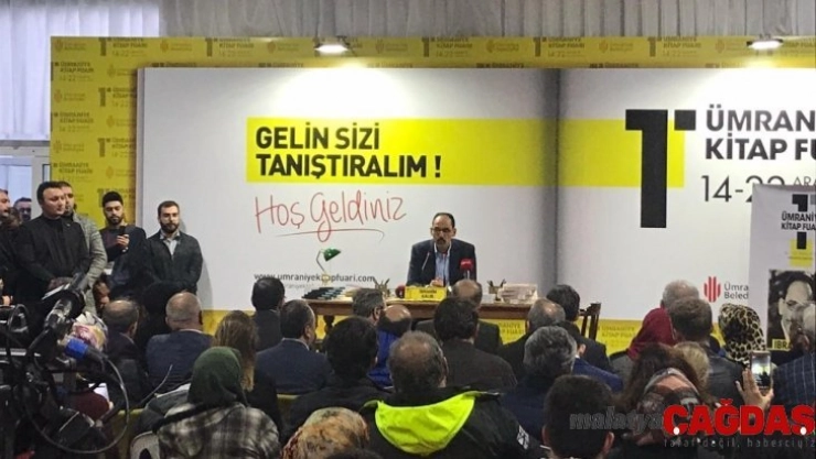 Söyleyişi sonrası Ümraniye Belediye Başkanı İsmet Yıldırım, Cumhurbaşkanlığı Sözcüsü İbrahim Kalın’a 1. Ümraniye Kitap Fuarı’na katılımlarından dolayı çiçek takdim etti.