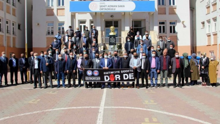 Burada açıklamalarda bulunan Memur-Sen Sivas il Temsilcisi Halil İbrahim Temiz, “Öncelikle Eğitim-Bir-Sen Sivas 1 Nolu Şube Olarak Eğitim çalışanlarının şiddete maruz kalmasını nefretle kınıyoruz. Sivas Merkez Şehit Adnan Saka Ortaokulu Müdürümüz Feryat ÇEVİK okulunda hafta sonu Destekleme Yetiştirme Kurslarında Görevli İdareci iken 26.09.2021 Pazar günü 13:30 sıralarında okul bahçesine aracını park eden E.G.’ye okul bahçesinde araç bulundurmanın yasak olduğunu söylemesi üzerine; E.G. tarafından okul müdürümüze küfürler edilmiş, fiili şiddette bulunulmuş, şiddet ve darp sonrası okul müdürümüzün burnu kırılmıştır. Okul müdürümüz Feryat Çevik’e geçmiş olsun dileklerimizi iletiyoruz. Bu olayda bizi derinden yaralayan bir diğer konu da arkadaşımıza saldıran bu vandalın ifadesi alındıktan sonra serbest bırakılmış olmasıdır. Buradan yetkililere bir kez daha sesleniyorum bu vandalın tutuklanması için saldırıya uğrayanın eğitim çalışanı dışında birilerinin olması mı gerekiyor? Eğitimciye verilen değer bu mu? Hani eğitimciye verilen değer her şeye değerdi. Bu kararın yetkililerce yeniden gözden geçirilmesini bekliyoruz. Şiddeti nefretle kınıyor, reddediyor, telin ediyoruz. Eğitimciye şiddet konusunda bütün eğitim çalışanlarının yekvücut bir şekilde dimdik ayakta olduğunu tüm Türkiye kamuoyuna ilan ediyoruz” ifadelerini kullandı.