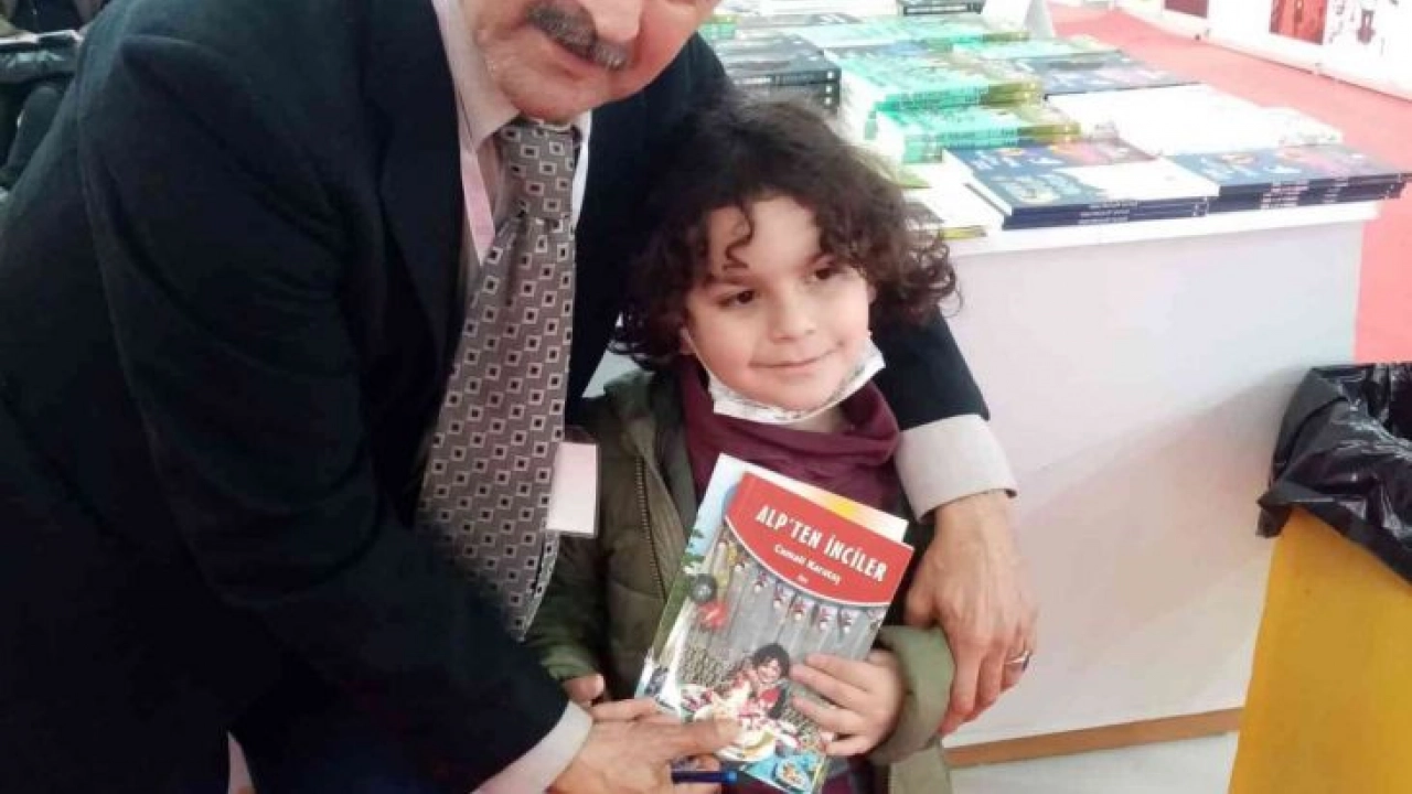Çukurova Kitap Fuarı’ndaki Adana Büyükşehir Belediyesi standında imza günü düzenleyen Yazar Cumali Karataş, “Alp’ten İnciler” adlı kitabının esin kaynağı olan torunu Alp’e, adı geçen kitabını armağan etti.