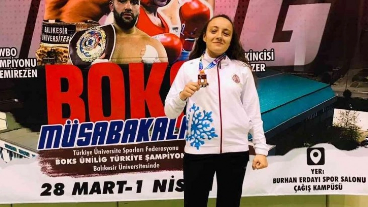 Balıkesir’de yapılan Üniversitelerarası Türkiye Bayanlar Boks Şampiyonasında 63 kilo sıkletinde Esmanur Aybike Falay Türkiye üçüncüsü oldu.