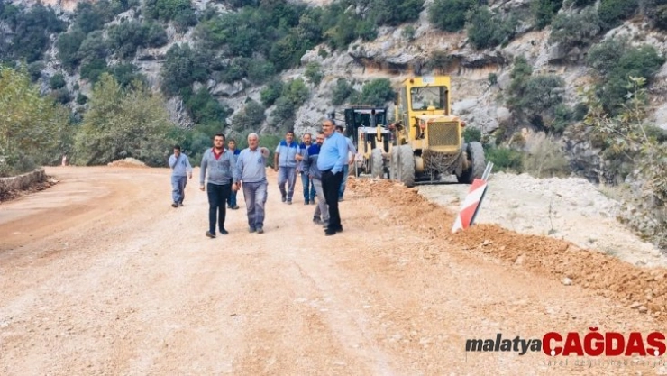Antalya Büyükşehir Belediyesi Kırsal Hizmetler Dairesi Başkanlığı alt yapı ekipleri, Demre İlçesi Köşkerler Mahallesi ile Kaş İlçesi Dirgenler Mahallesi arasında bulunan grup yolunun 4 buçuk kilometrelik kısmında durumu kötü olan bölgeleri greyder ile söküyor. Belirlenen bölgelere büz koyan ekipler tekrar malzeme sererek silindir ile sıkıştırıyor. Hazırlık çalışmalarının ardından yolun asfaltlanması planlanıyor. Yürütülen bakım onarım çalışmalarını yerinde incelemek üzere Demre ilçesine giden Büyükşehir Belediyesi Kırsal Hizmetler sorumlusu İsa Akdemir, çalışanlardan bilgi aldı.