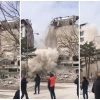 Malatya’da depremden dolayı ağır hasar alan bina, yıkım esnasında çöktü. Çökme anı ise amatör kameralara yansıdı.