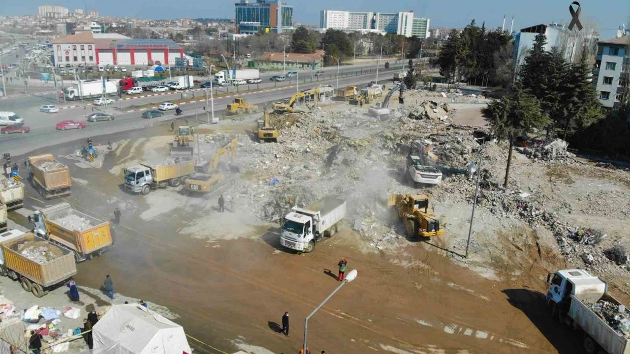 Malatya’da depremin 21’inci gününde devam eden enkaz kaldırma çalışmaları havadan görüntülendi.