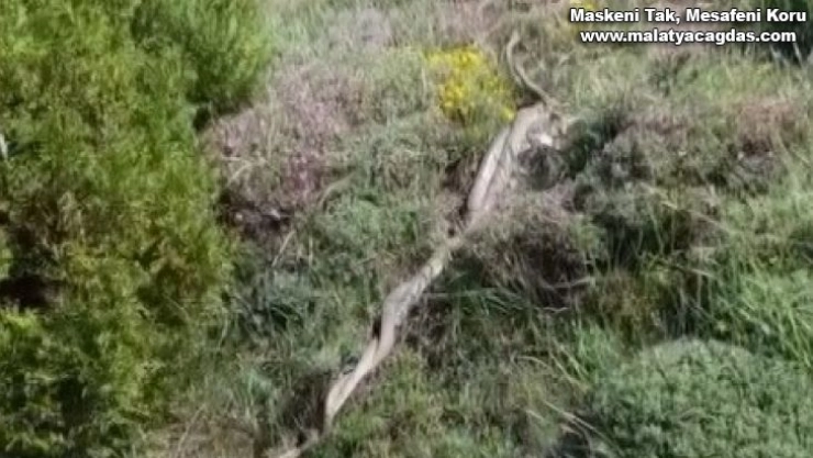 Sivas’ın Zara ilçesinde yaklaşık 3 metre uzunluğundaki iki yılanın dansı görenleri ürküttü.