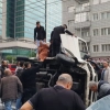 Kayseri'nin Kocasinan ilçesinde devrilen minibüsteki 3 kişi, kazadan burunları kanamadan kurtuldu.