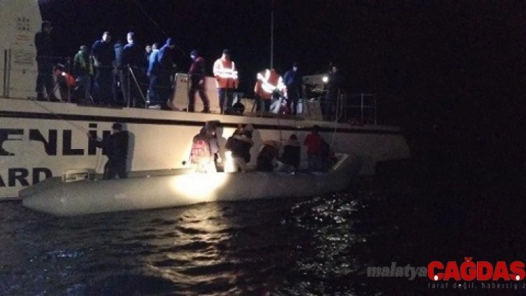 Aydın'ın Didim ilçesi açıklarında, Sahil Güvenlik botu tarafından lastik botla yurt dışına kaçmaya çalışan 30 düzensiz göçmen yakalandı