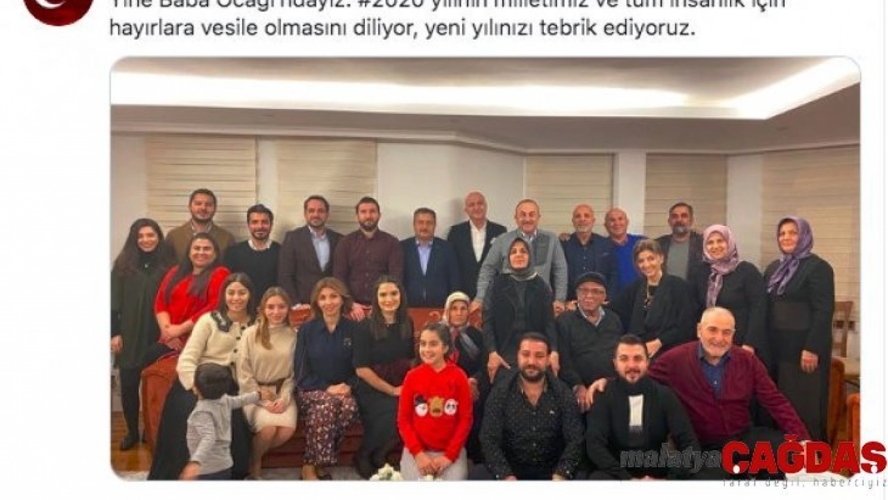 Bakan Çavuşoğlu, babası Osman Çavuşoğlu, ağabeyleri Alanyaspor Başkanı Hasan Çavuşoğlu, Ahmet Çavuşoğlu, kardeşleri Uğur Çavuşoğlu, Şükrü Çavuşoğlu, eşi Hülya Çavuşoğlu ve ailenin diğer fertlerinin olduğu fotoğrafı sosyal medya hesabından, “Yine baba ocağındayız. 2020 yılının milletimiz ve tüm insanlık için hayırlara vesile olmasını diliyor, yeni yılınızı tebrik ediyoruz" notuyla paylaştı.
