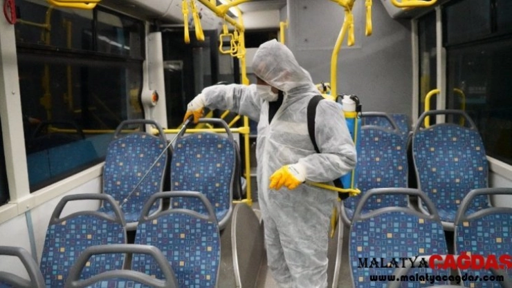 Diyarbakır'da Büyükşehir Belediyesine ait toplu taşıma araçları, özel halk otobüsleri, minibüsler, taksiler ve havalimanında dezenfekte çalışması yapıldı.